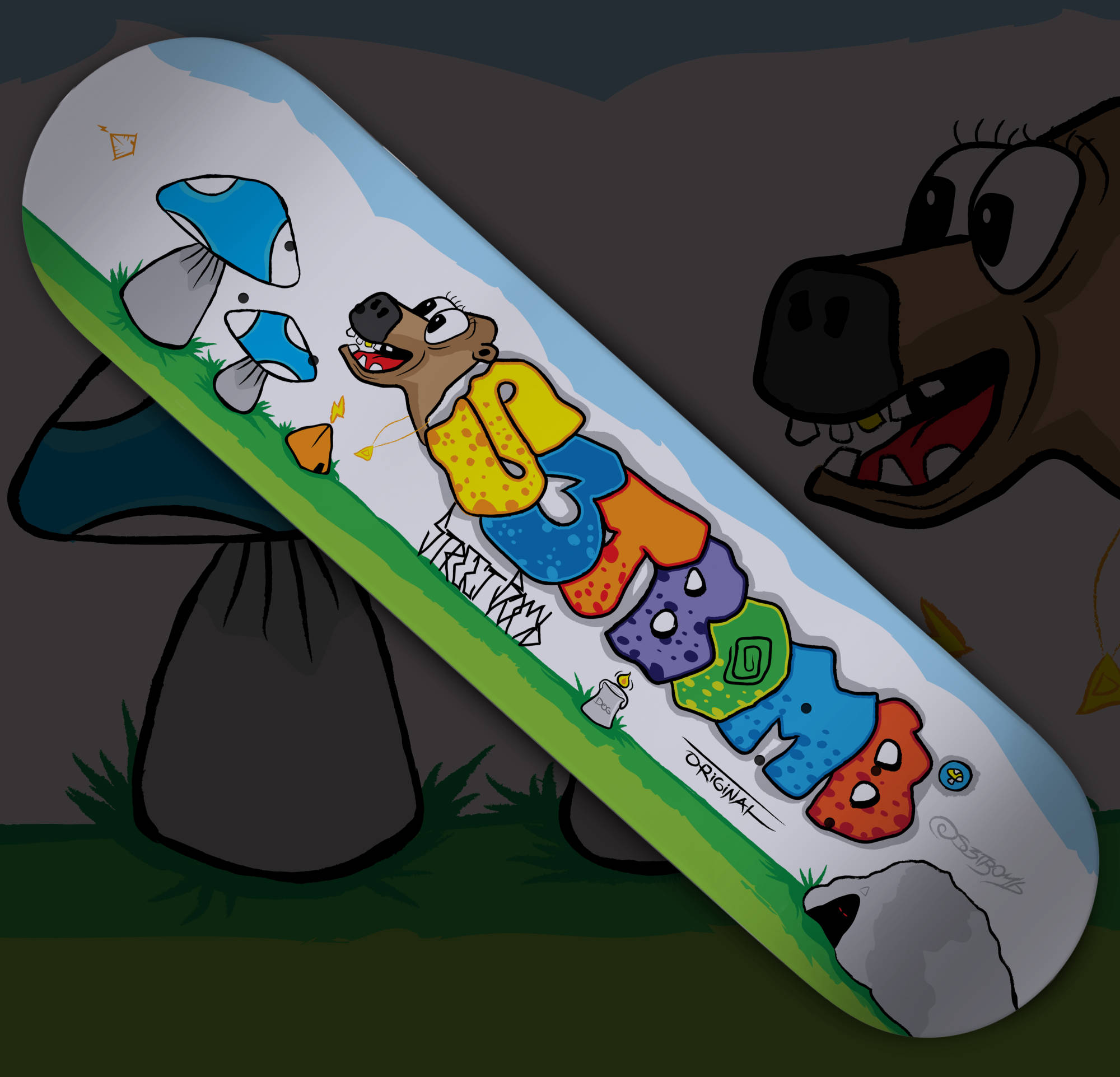 Street Dog – Um estilo psicodélico vibrante, com personagens divertidos e letras no estilo grafite, trazendo uma vibe criativa e irreverente.