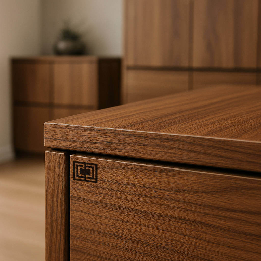 O logotipo foi desenvolvido para transmitir modernidade e integração, unindo as letras "C" em um símbolo contínuo e criativo. Com design minimalista e versátil, reflete a união entre estética e funcionalidade, representando o alto padrão e a personalização presentes nos móveis da marca.